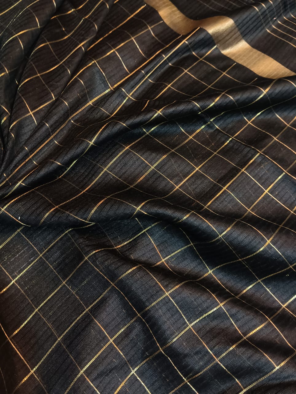 Crafted from high-quality silk, the fabric is soft, smooth, and drapes gracefully, making it ideal for festive occasions, weddings, parties, and cultural events. Its minimal checked pattern offers a perfect blend of sophistication and authenticity.